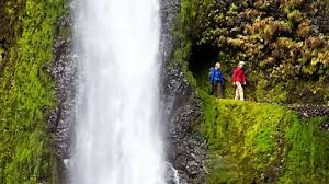Small wooden bridges cross stretches of rushing water. The air carries cool mist during wet months. The trail rises steadily, though never harshly, and rewards hikers with multiple waterfall viewpoints rather than a single destination. Each cascade brings its own sound and shape.